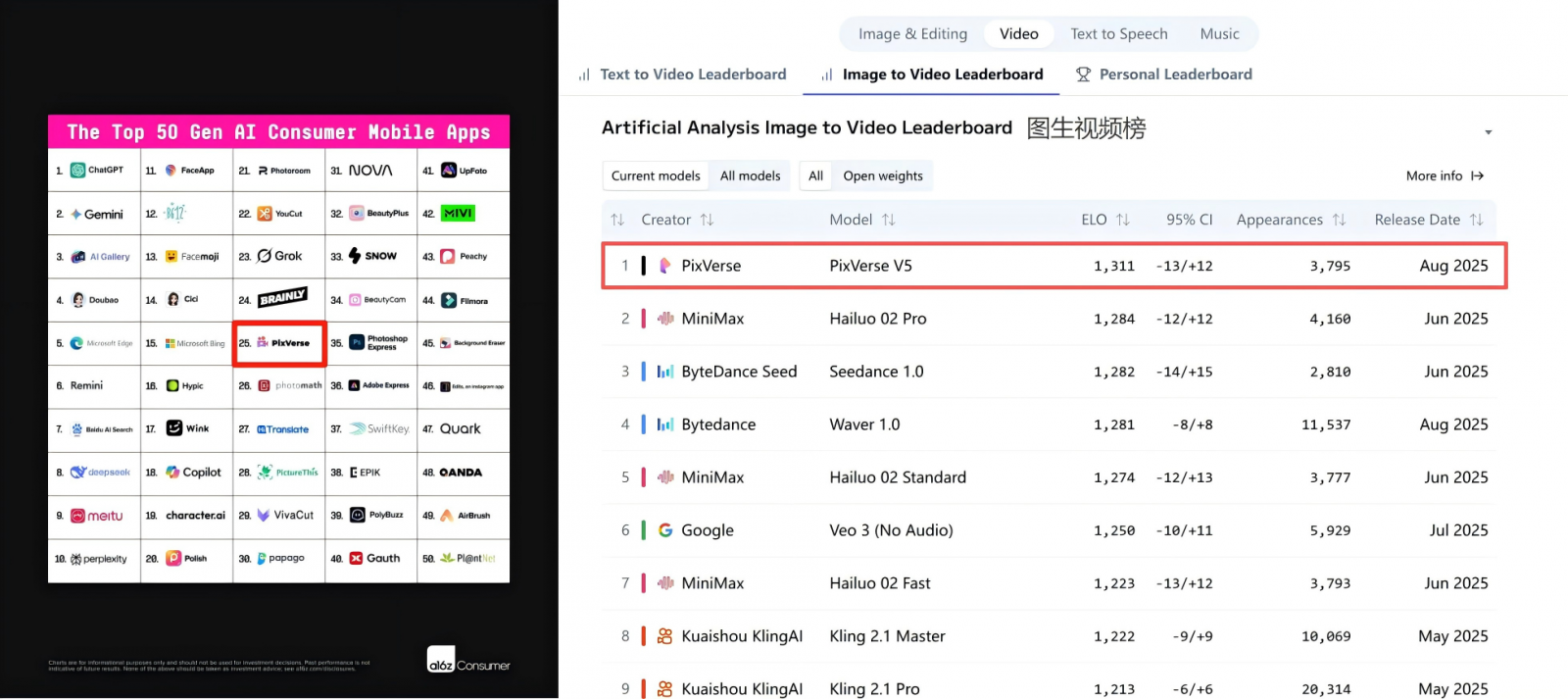 爱诗科技创立于2023年4月,致力于打造全球领先的AI视频生成大模型及应用,满足AI时代下视频消费的全新需求。目前,公司全球用户规模已突破1亿,其自研视频生成大模型PixVerse V5位居Artificial Analysis图生视频榜首,技术实力保持在全球第⼀梯队。旗下产品PixVerse(国内版“拍我AI”)入选a16z “全球Top 50生成式AI消费移动应用”榜单第25位,全球用户AI视频消费实力强劲。